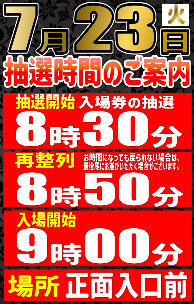 8時30分~入場整理券配布!!(近隣住民の方へ迷惑になる場合は、抽選入場の時もあります。) |