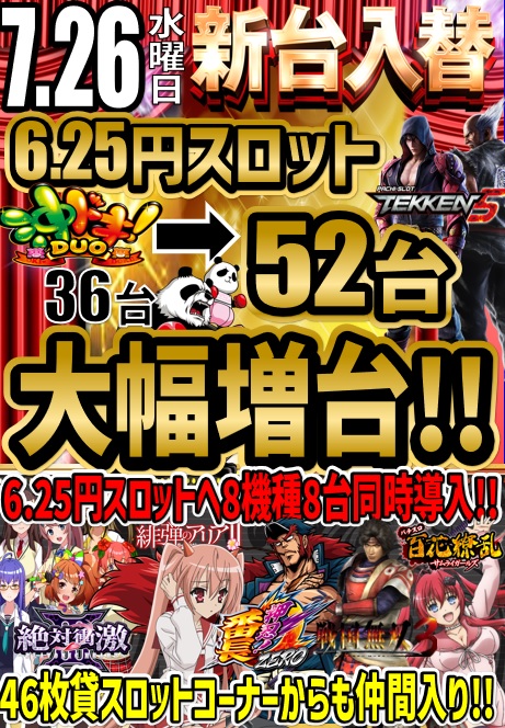 6.25円ジャグラー増台!朝9:00OPEN予定!!