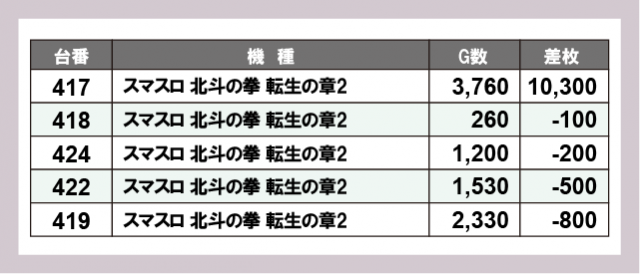 ※差枚数順に掲載しています