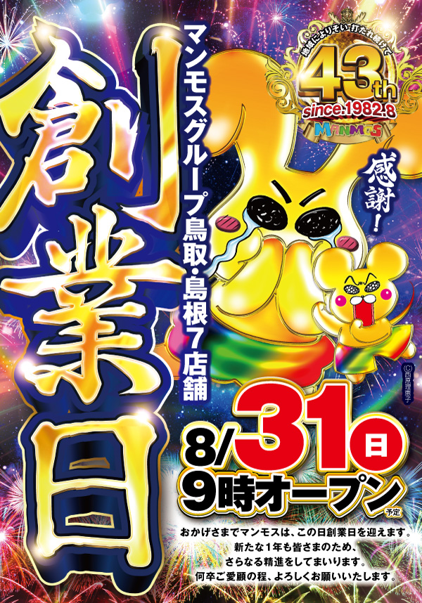 43年分の感謝を全てのお客様にー マンモス全店朝9時オープン
