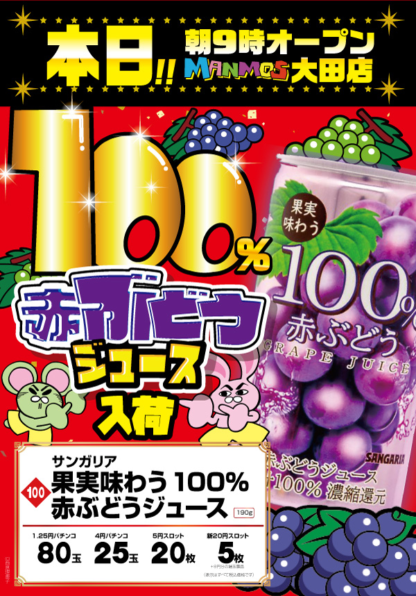大好評!!ジャグラー景品&100%ぶどうジュースW入荷!!