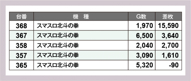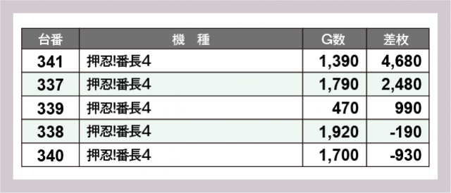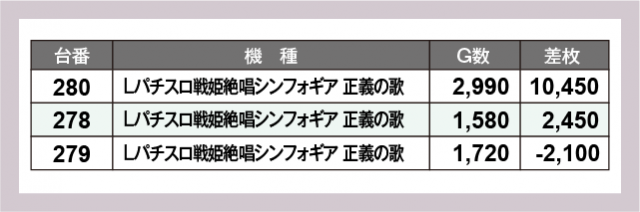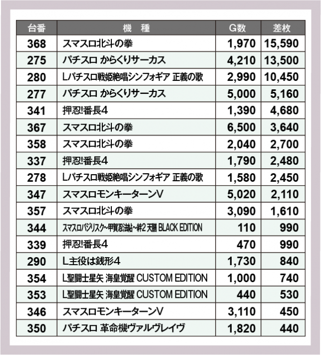 ※差枚数順に掲載しています