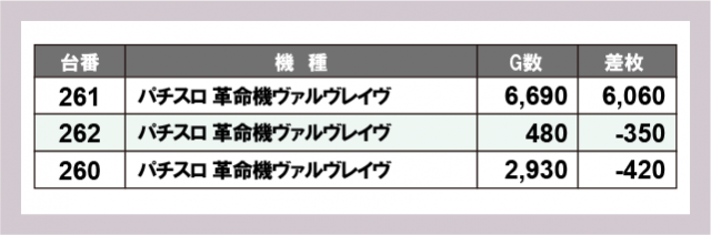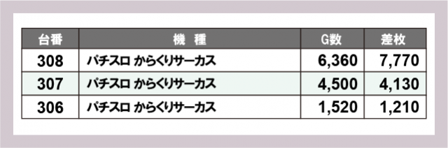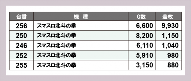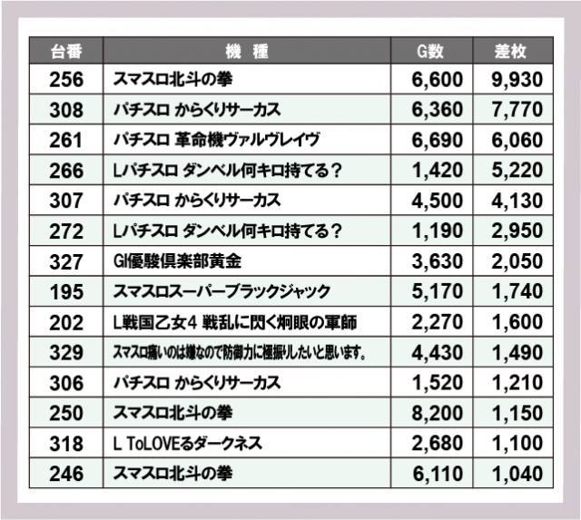 ※差枚数順に掲載しています