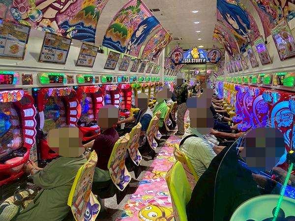 15時ごろの1.26円パチンコでは「PA大海物語4スペシャル Withアグネス・ラム」や「PAスーパー海物語IN地中海」が人気で、プレイヤーの嬉しそうな表情を多数確認している。