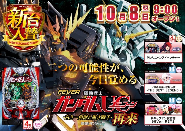 本日10月8日(火)新台入替(予定)