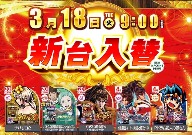 本日3月18日(火)新台入替(予定)