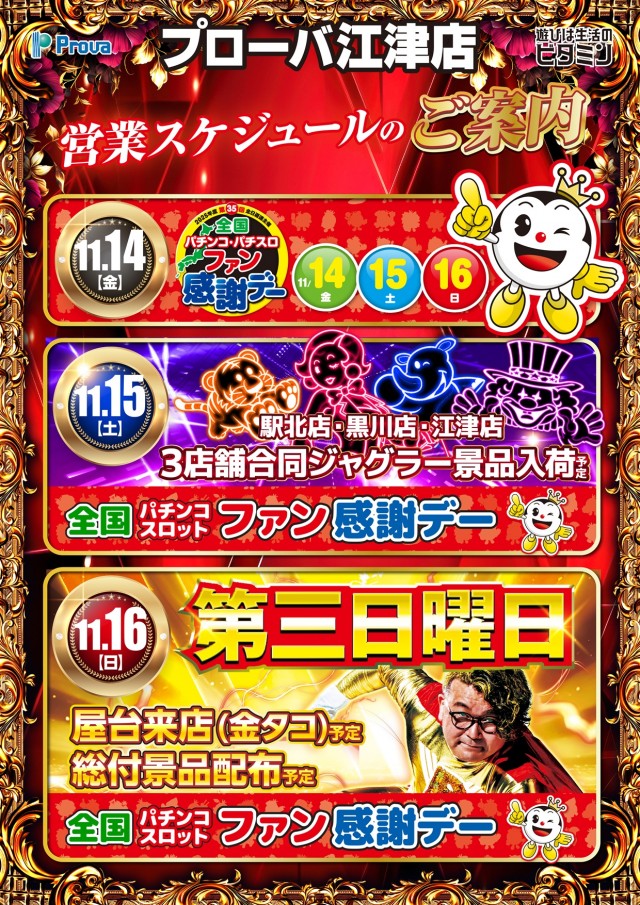 【明日】3店舗合同ジャグラー景品入荷 × ファン感謝デー😊