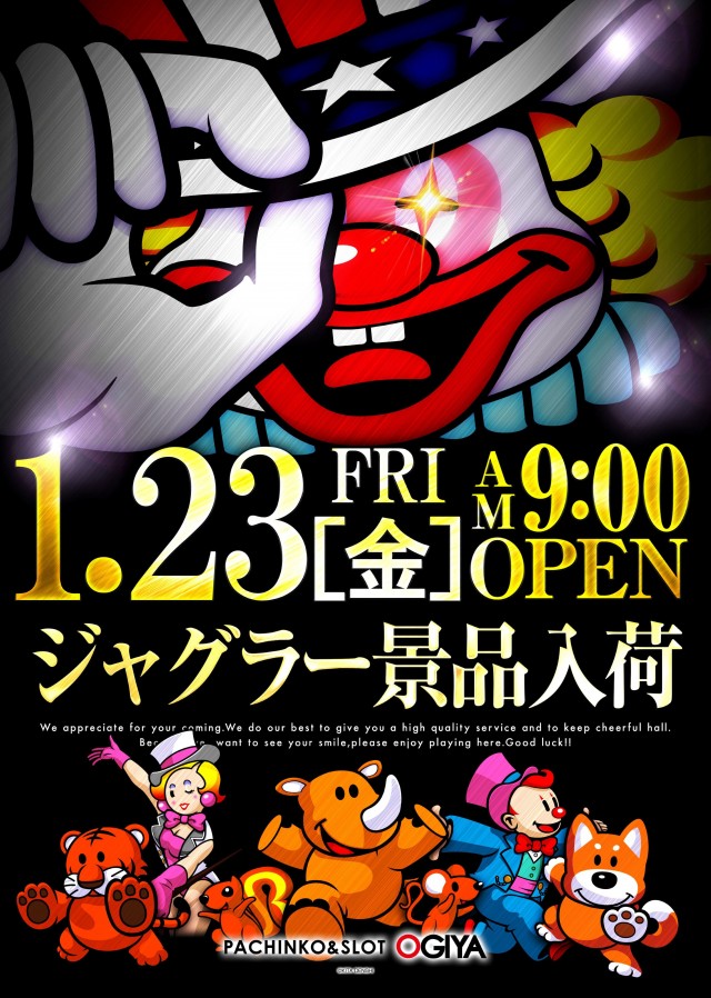 1月20日(火)【ビッキーゼウス降臨!オーギヤ磐田店に集え】