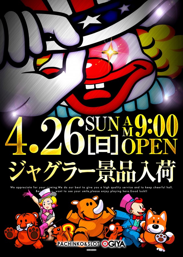 4月26日(日)【ジャグラー景品入荷】