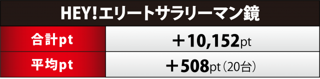 また、上記4機種に次いで5桁の合計ptを残したのが『HEY!エリートサラリーマン鏡』。+4千クラスを2台輩出した。