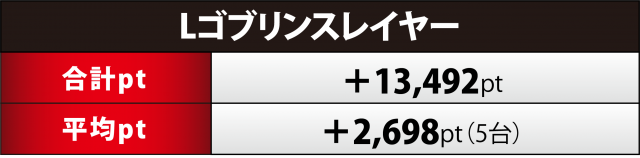 『Lゴブリンスレイヤー』は設置5台全てがプラスを実現、トップ台は+7千オーバー、平均ptは+2千6百超のハイクオリティに終わった。