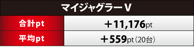 合計ptで次いだのは『マイジャグ』20台。トータルで+1万1千オーバーのポイント数となり、最も高い成績となった865番台は+4千弱となった。