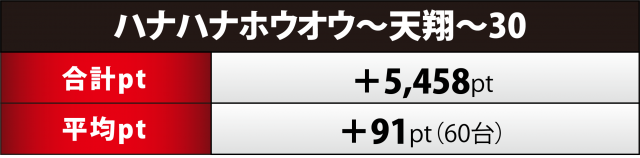 さらに、『ファンジャグ』『ホウオウ天翔』は合計ptで5桁プラスを逃したが、どちらもトップの台は+3千超のポイント数を残した。