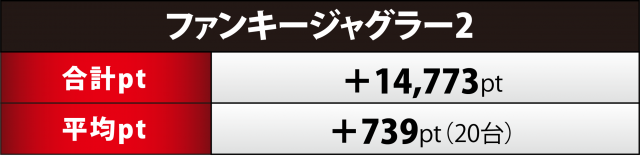 導入から日が浅い『ゴージャグ』20台も負けてはいない。こちらも合計ptでは+1万9千超となり、+3千超×2&+2千超×3と優秀台を複数カウントすることができた。