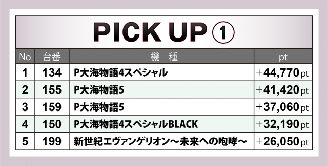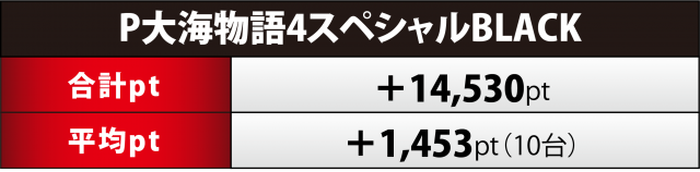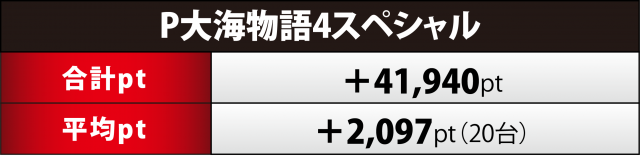 その中で最も高い合計ptとなったのが『大海4SP』10台で、+4万超のポイント数をマークした。