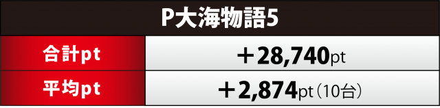 それよりも台数が少ない『大海5』10台は平均ptで『大海4SP』を上回った。