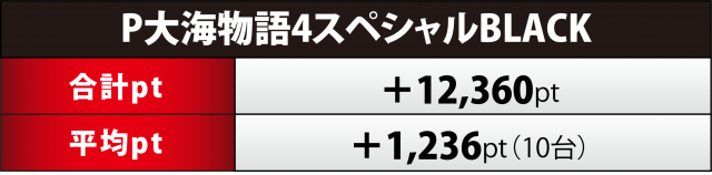 『大海4SP BLACK』10台も『大海4SP』に負けていない。最優秀の144番台が+2万4千の出玉を達成した。
