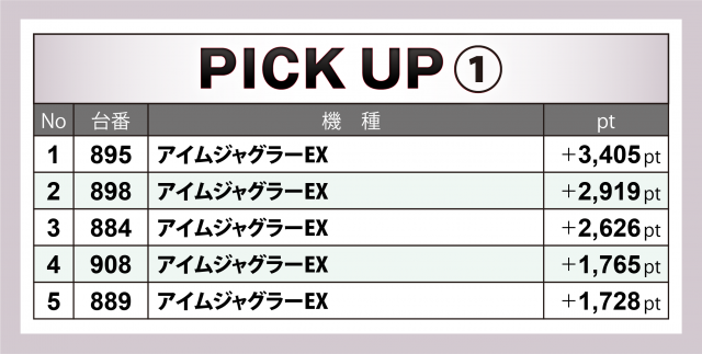 この項ラストは上記の5機種による好出玉データをピックアップ。この5台が全台の中でもトップ5となった。
