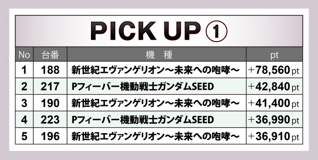 合計ptでプラスを逃した『ガンダムSEED』も2台がランクイン、+4万2千超&+3万7千弱、ランク外でも+3万6千超と複数が大量獲得に成功した。