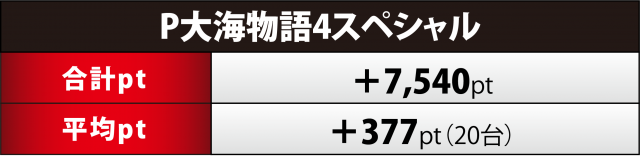 『大海5』に次いで『大海4SP』20台も合計でプラスを果たし、プラス率は55%と高かったが、5桁の差玉となったのは1台に留まった。