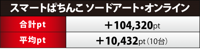 また、4パチ全414台は勝率約43%と前回よりも大きくアップした上で、『スマパチSAO』の後押しもあり、+17万5千の合計ptで締め括ることができた。
