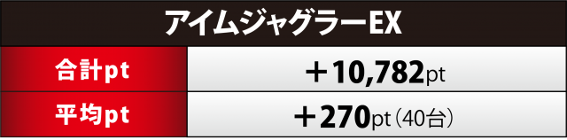 前回に引き続き今回はこの6つ全てが合計ptでプラスを成し遂げハイクオリティを維持した。まずはジャグラーシリーズ4機種から見ていこう。