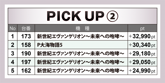 この4機種によるトップ5は4回連続で『エヴァ15』『大海5』が占有した。