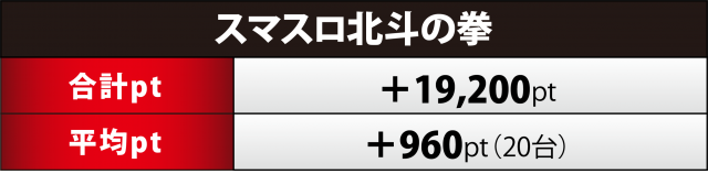 過去2回でも高水準をキープしていた『スマスロ北斗』は今回合計ptで数値を落としたものの、+2万に迫る数値を残した。