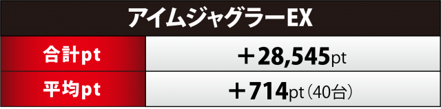 今回はこの5マシン全てが合計ptでプラスを収めた。最初は、ジャグラーシリーズを数値の多い順でチェックしていく。