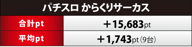『からくりサーカス』9台も5桁の合計pt&4桁の平均ptをゲット。プラス率は約56%(5台)、4台が1,000overをマーク、787番台が+8千8百超となった他に+4千超が3台と、こちらもハイクオリティ。