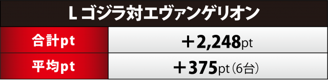 『ゴジエヴァ』6台も合計ptでプラスをゲット。こちらもプラス台の割合は約33%(2台)と決して高くはなかったが、796番台が+9千8百超と万枚間近となり全体を下支えした。