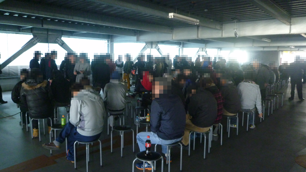 朝イチの状況を見てみると200名近くのプレイヤーがホール前に集まっており、開店前から大きな賑わいを感じることができた。また、イスや暖房器具が用意されているため、早い時間から来店してもゆったりと待つことのできる環境も整っていた。