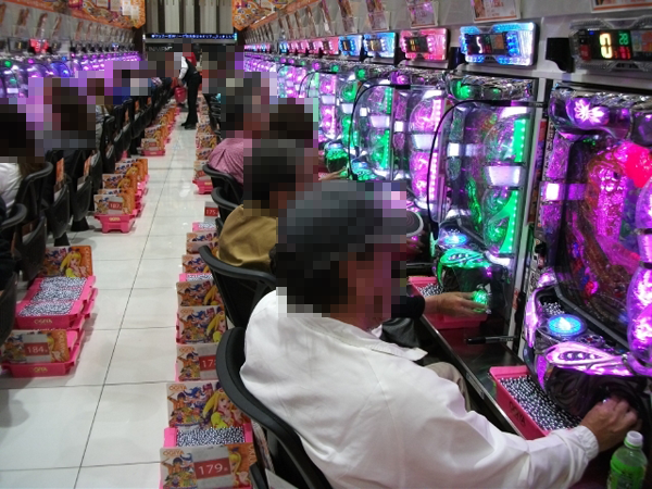 ボーナスタイプでは「クイーンハナハナ-30」が圧倒的な人気を誇っており、取材時に設置されていた40台のほぼ全てが埋まってしまうほどだった。これだけのプレイヤーが期待しているというのは、やはり状況が良いからではないだろうか。