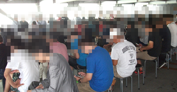 朝の入場方法は並び順となっていて、これまでの取材と同様に大勢のプレイヤーが集まっていた。椅子が用意されているため、早い時間から並んでも、ゆっくりと開店を待つことができるだろう。