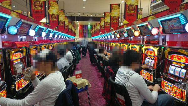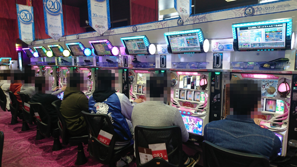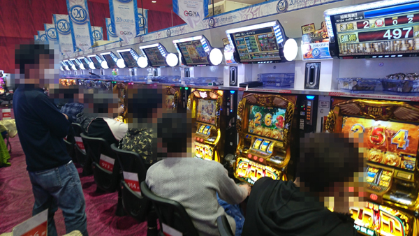 20円パチスロでは、「バジリスク~甲賀忍法帖~絆」や「押忍!番長3」、ミリオンゴッドシリーズなど様々な機種が活気づいているといった状況。各機種にポテンシャルを引きだすプレイヤーが存在し、魅力的な光景が広がっていた。