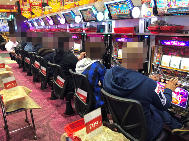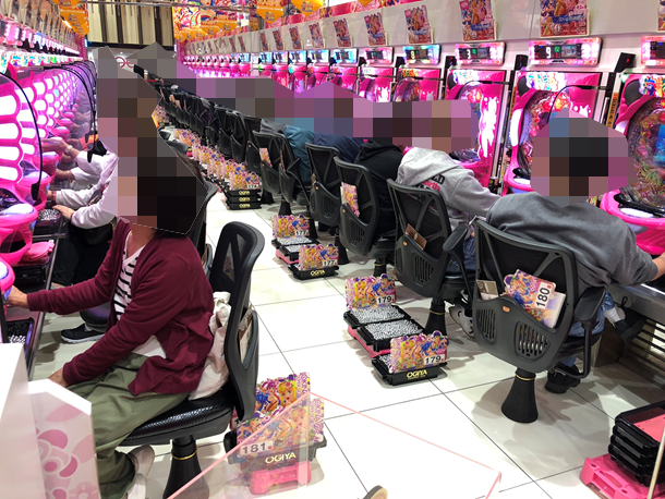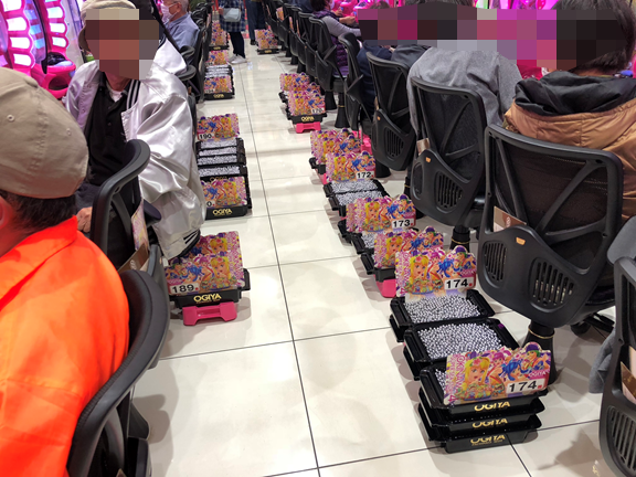 40台設置の『CR大海物語4』は圧巻の稼働でした。写真は撮り忘れてしまったんですが、こちらの方はメインと一目でわかる光景。