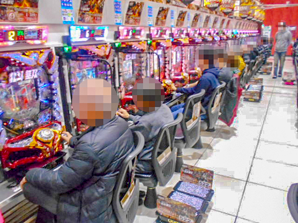 14時ごろの4円パチンコでは「ぱちんこCR真・北斗無双」や「CR大海物語4」、「CR大海物語4 BLACK」などで好調なプレイヤーが見受けられ、時折見せる嬉しそうな表情が印象に残っている。