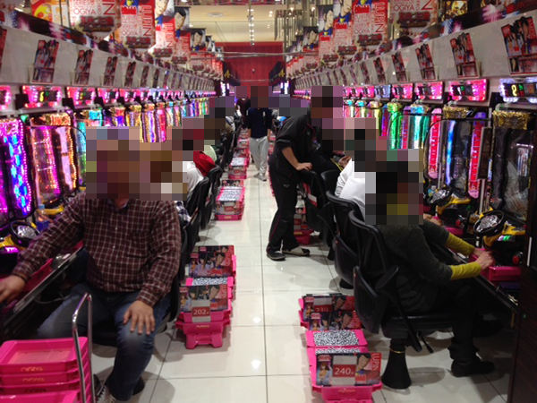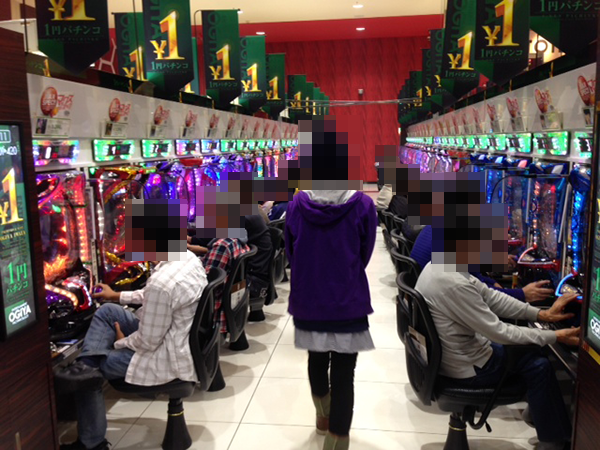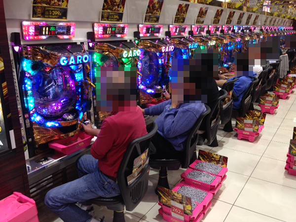 16時を過ぎる頃になり、4円パチンコでは「CR牙狼 魔戒ノ花」や「CRぱちんこ仮面ライダー フルスロットル」といった新台が盛況。