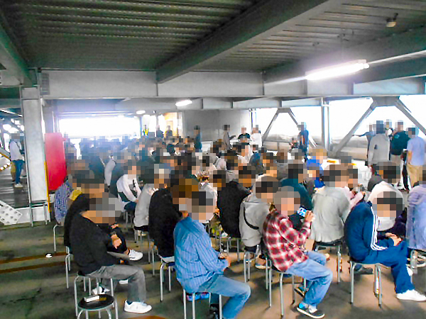 開店前から500人以上ものプレイヤーが集合。会話を楽しみながら入店を待つ、実に和やかなシーンを目にしている。
