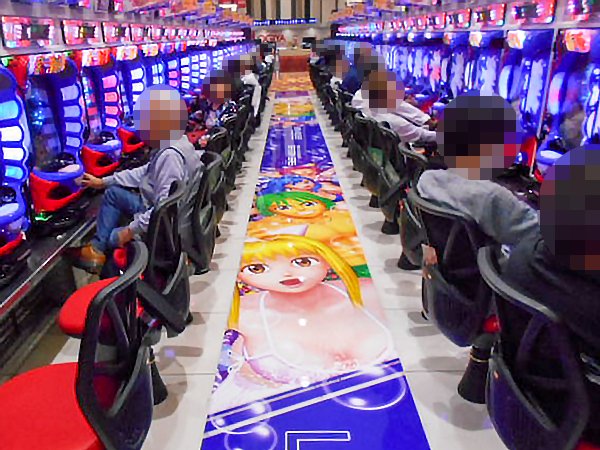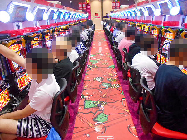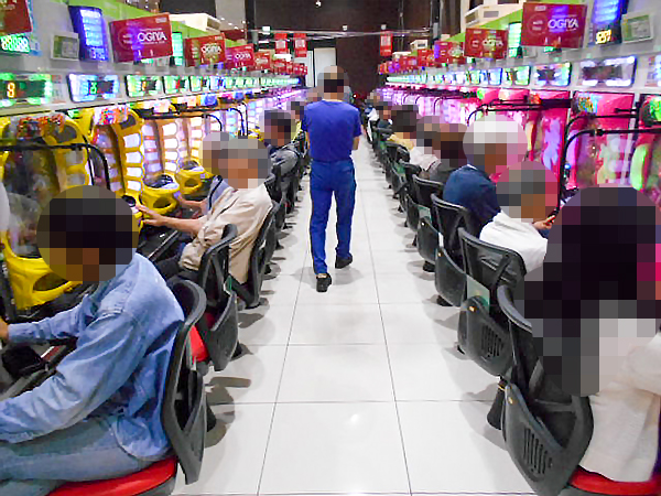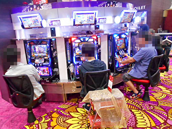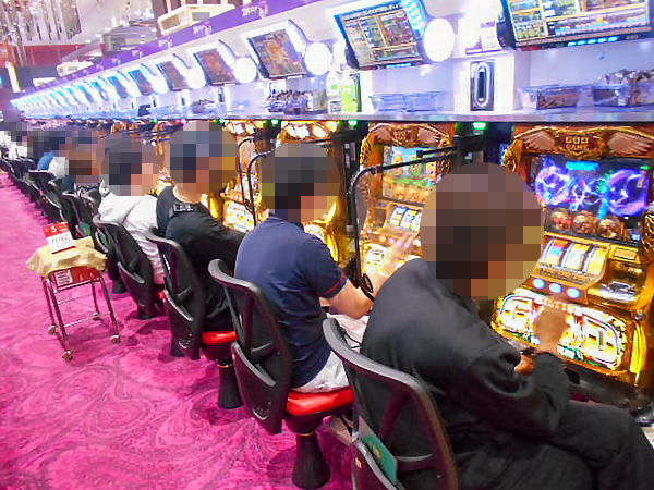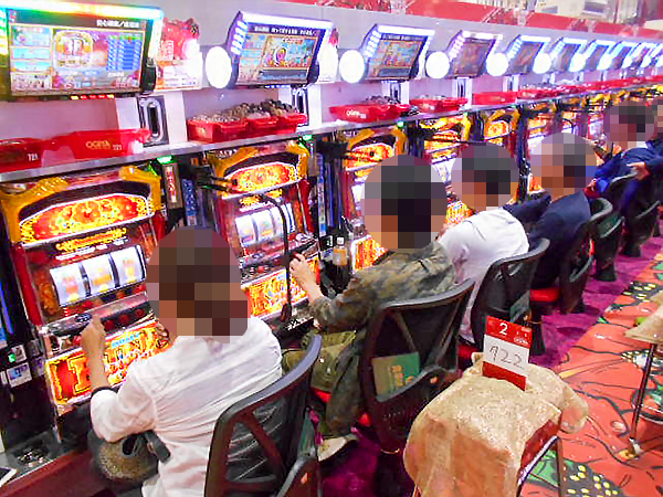 5円パチスロに目を移すと、楽しそうにレバーを叩くプレイヤーの姿が至る所で見られた。