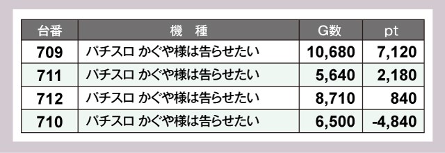 それだけではない。『パチスロ かぐや様は告らせたい』や『スマスロモンキーターンV』、『スマスロ モンスターハンターライズ』が大量ptを獲得しており、周囲の視線を集めていた。