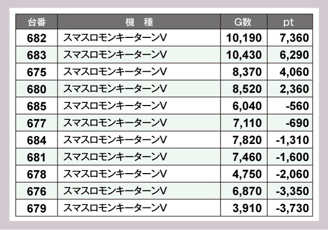 ※差枚pt順に掲載しています。
