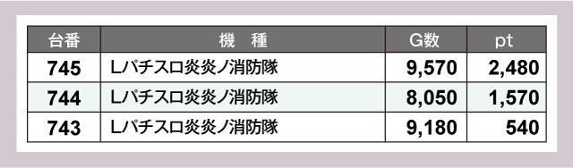 『Lパチスロ炎炎ノ消防隊』は平均8,900回転と高稼働なだけでなく、3台すべてがプラスと絶好調だった。