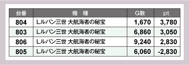 ほかにも『Lルパン三世 大航海者の秘宝』や『スマスロ 一方通行 とある魔術の禁書目録』 からは+3,000ptを超える優秀台が飛び出しており、多くのプレイヤーを楽しませていた。