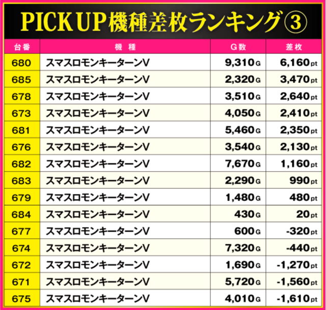 ※差枚pt順に掲載しています。