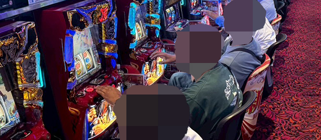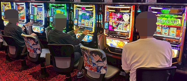 取材時の店内はすでに盛り上がりをみせていて、スロットコーナーでは夢中でレバーを叩くプレイヤーの姿が散見された。