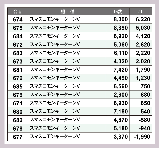 ※差枚pt順に掲載しています。