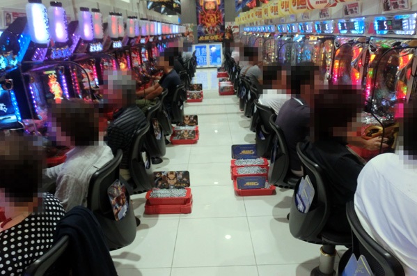 パチンコ・パチスロ共に、定番機種を中心に多くのプレイヤーでにぎわっていた。