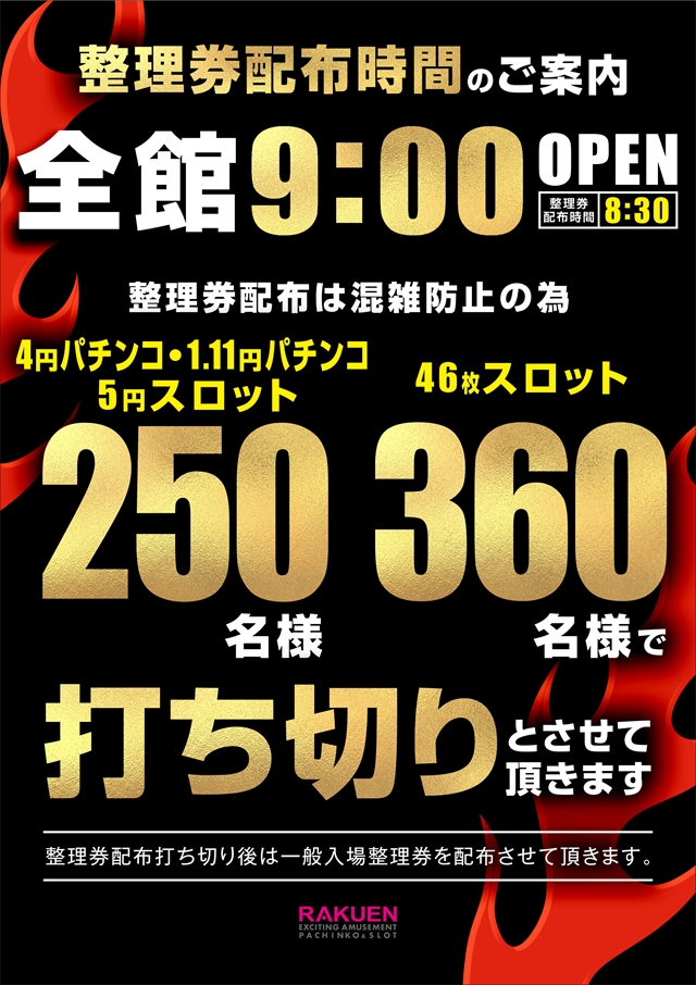 本日も全館9時開店ッ!ぜひご来店下さいませッ!