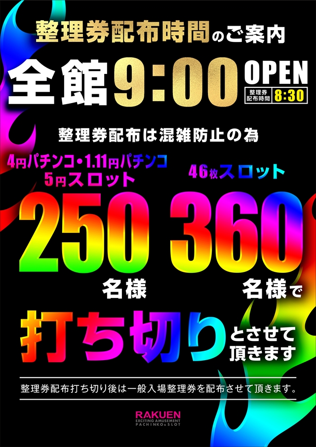 本日も全館9時開店ッ!ぜひご来店下さいませッ!